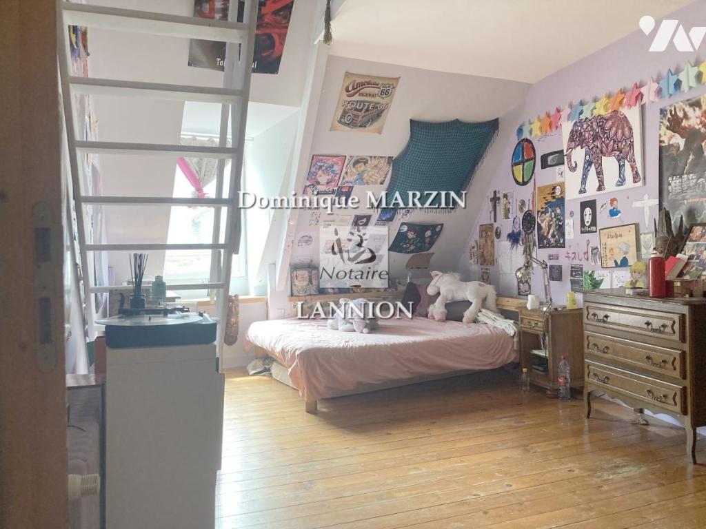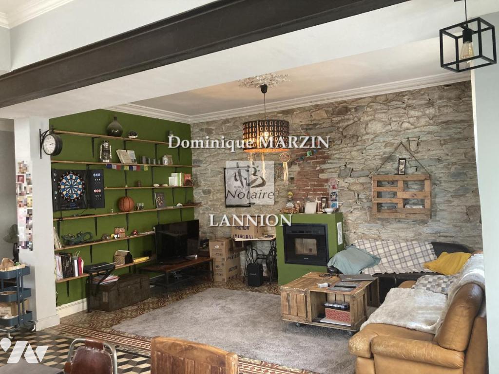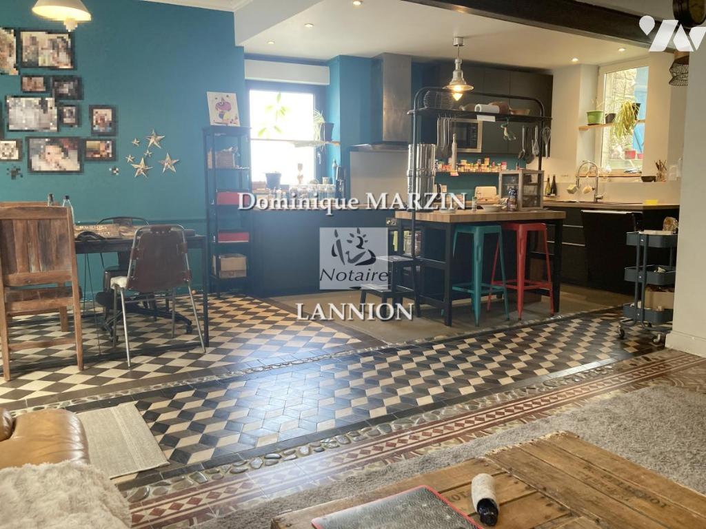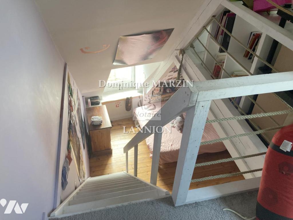 Maison de ville située à LANNION centre(22300), comprenant un séjour salon avec coin cuisine aménagée, quatre chambres, proximité des commerces et écoles, courette et garage fermé.